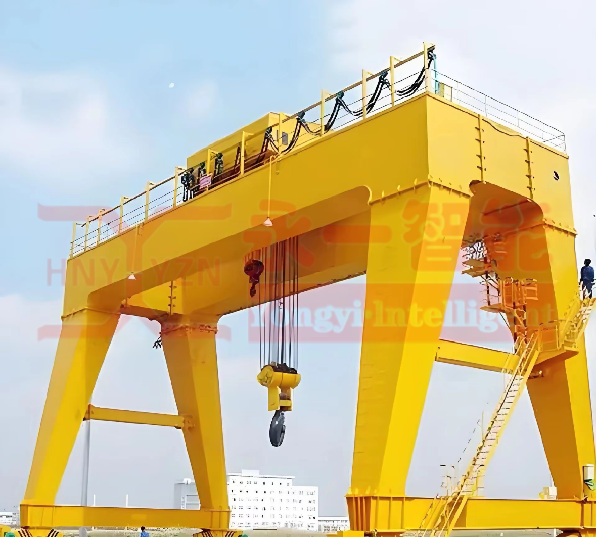 橋式起重機(jī)是橫架于車間、倉庫和料場(chǎng)上空進(jìn)行物料吊運(yùn)的起重設(shè)備。由于它的兩端坐落在高大的水泥柱或者金屬支架上,形狀似橋。橋式起重機(jī)的橋架沿鋪設(shè)在兩側(cè)高架上的軌道縱向運(yùn)行,可以充分利用橋架下面的空間吊運(yùn)物料,不受地面設(shè)備的阻礙。它是使用范圍*廣、數(shù)量*多的一種起重機(jī)械。